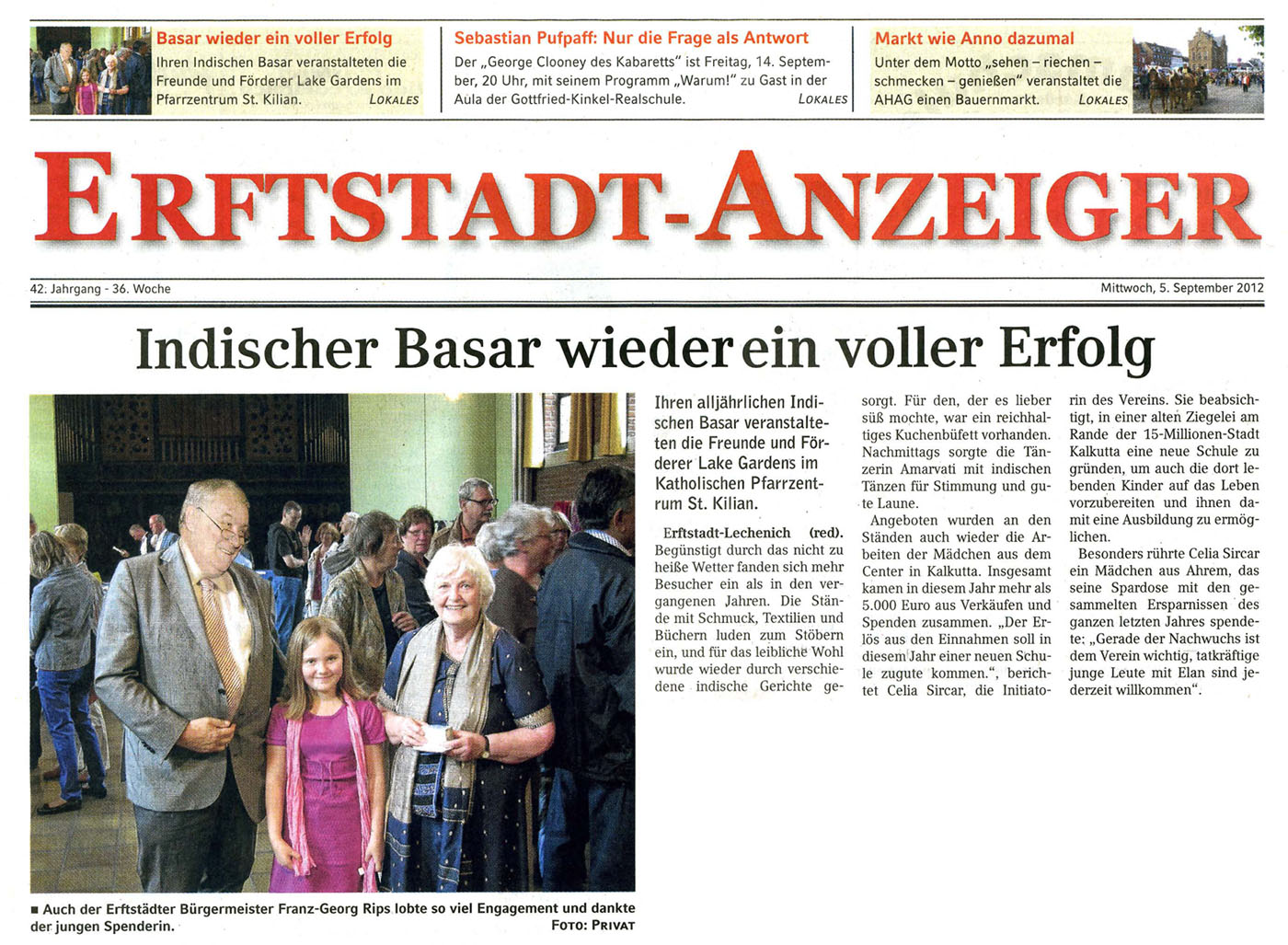 Bericht im Erftstadtanzeiger über unseren Indischen Basar 2012.